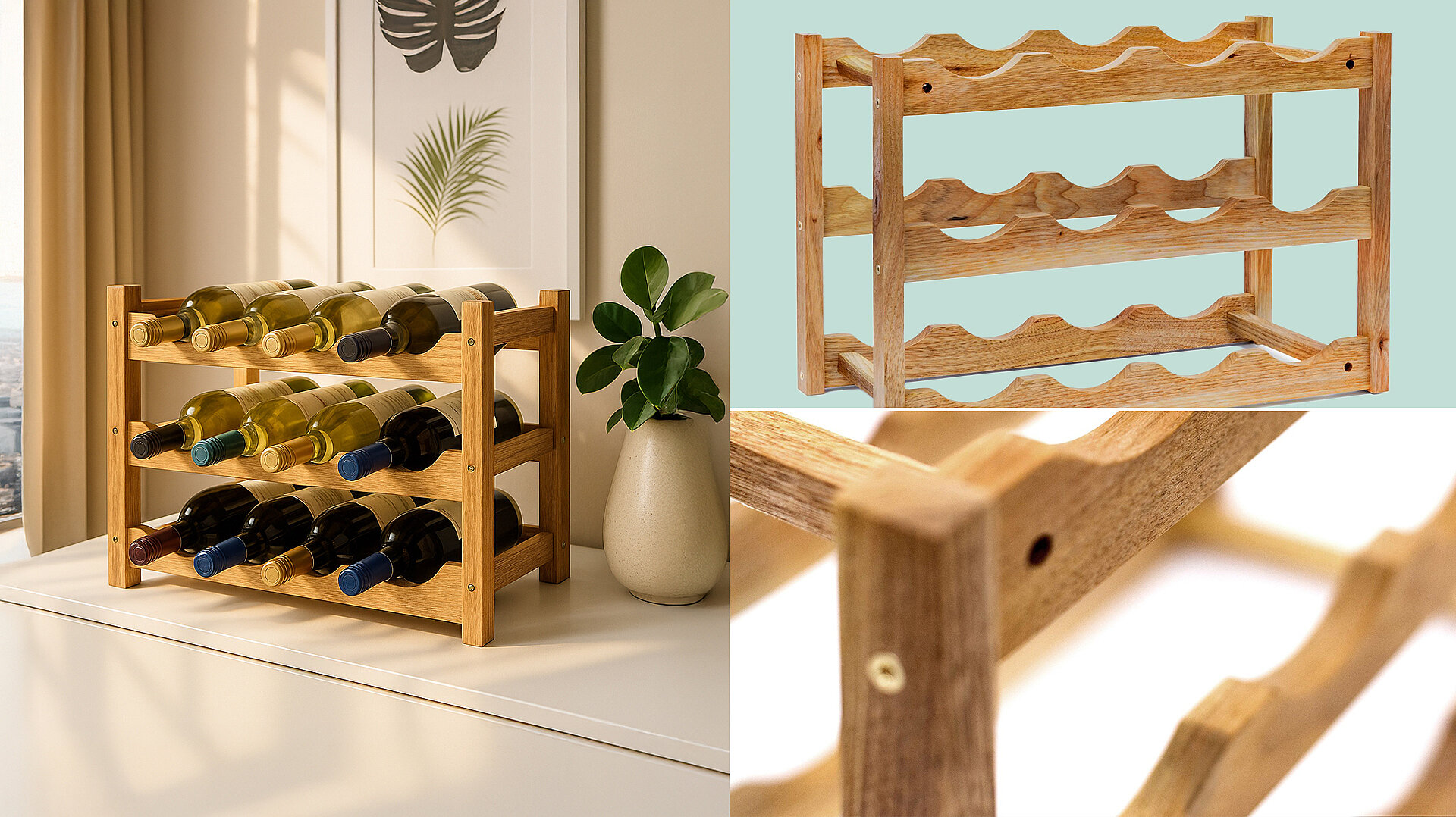 Wer kennt es nicht: Die eine Flasche liegt im Vorratsschrank, zwei weitere im Kühlschrank, und der gute Rotwein steht seit Wochen schief im Regal. Zeit, dem Chaos ein Ende zu setzen! Mit dem Weinregal aus Bambus gibst du deinen Flaschen endlich ein Zuhause, das so ordentlich wie stilvoll ist.