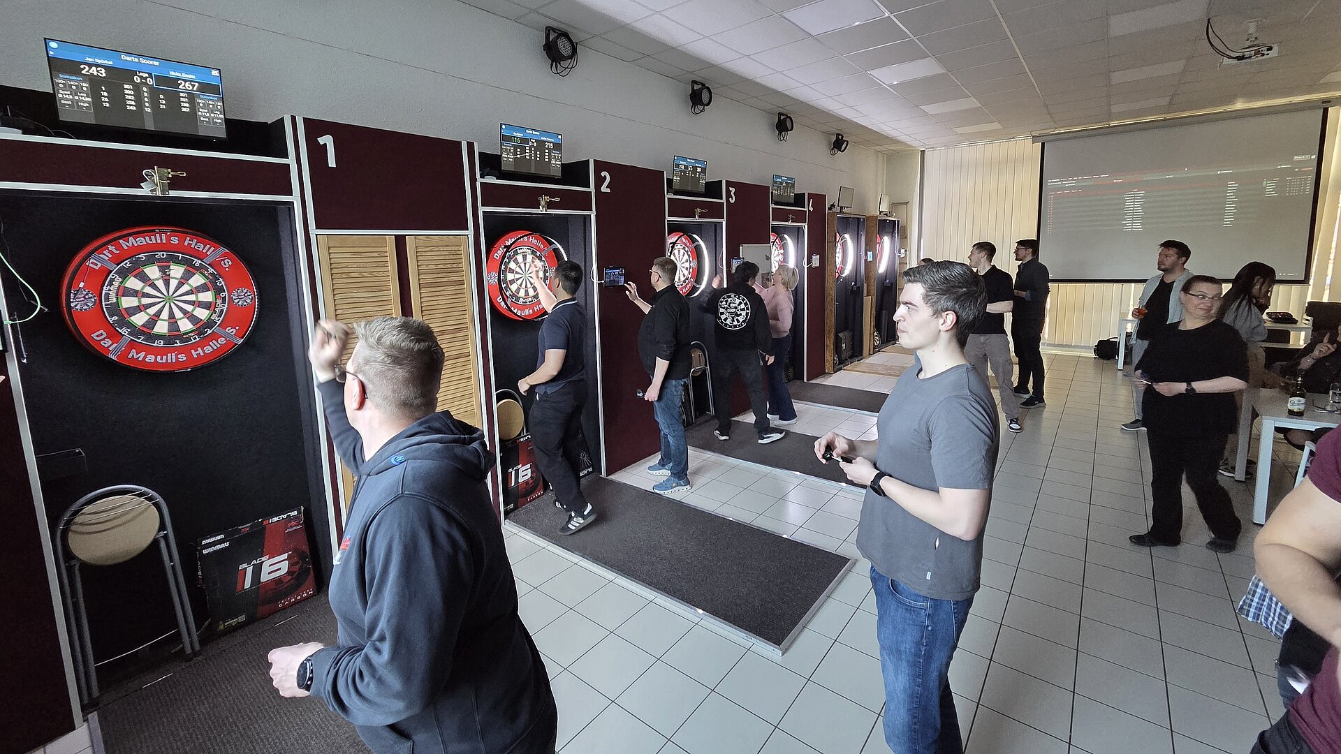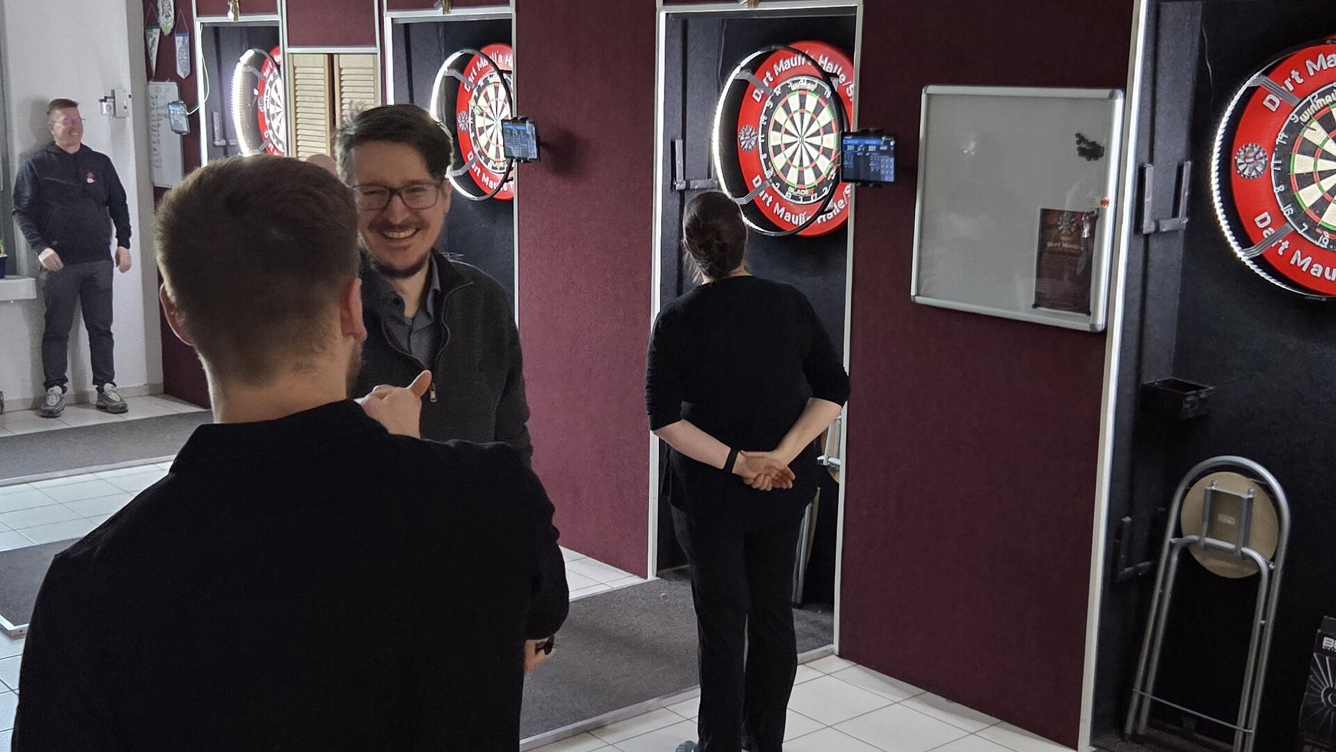 Nach der Arbeit ging es für rund 25 Kolleginnen und Kollegen zu den Dart Maulis nach Halle. Zwischen konzentrierten Blicken, lautstarkem Jubel und klassischen „Der war eigentlich drin!“-Analysen flogen die Pfeile bis in den späten Abend.